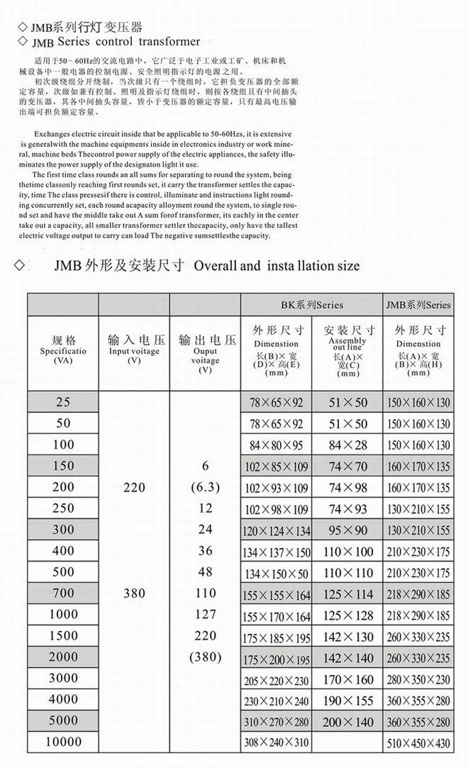 適用于交流50~60HZ交流的電路中,通常用于電子工業、工礦企業及局部安全照明的電源之用。