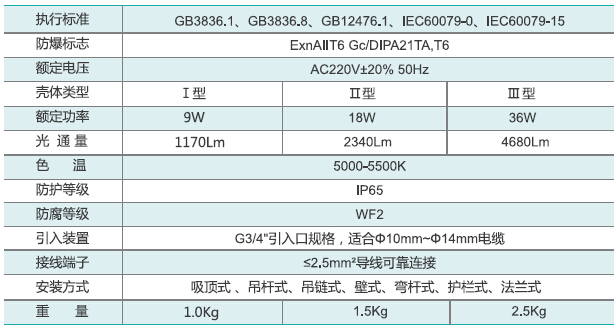 •適用于Ⅱ類爆炸性氣體環境;